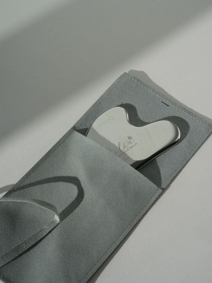 Ган материалаар хийгдсэн нүүрний гуа ша. Илгэн ууттай. Хэмжээ: 5.5*8.5 см