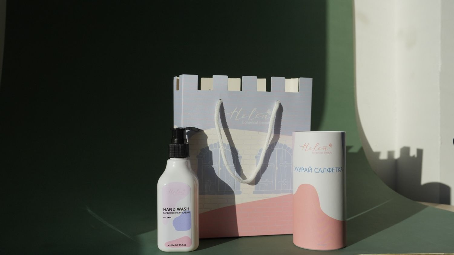 Багцад: 1. Бэлгийн цаасан тор 2. Гарын шингэн саван 200 мл 3. Хайрцагтай хуурай салфетка 50 ш